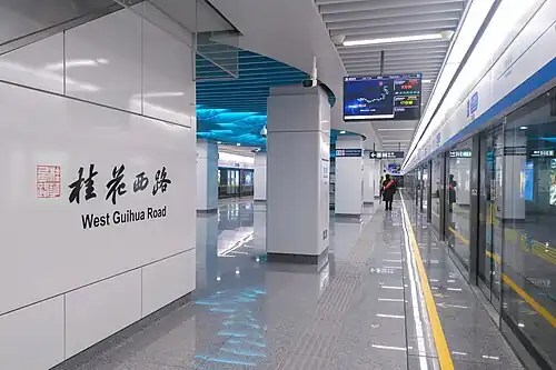 West Guihua Road (Chinese: 桂花西路) is the western terminus of the Fuyang section of Line 6 of the Hangzhou Metro in China. It was opened on 30 December 2020, together with the Line 6.[1][2] It is located in downtown Fuyang District of Hangzhou, the capital city of Zhejiang province.