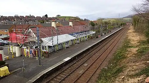 Originally a two platform station, the southbound platform was demolished as part of the electrification works in 1985. The former northbound line (to Largs) is electrified and signalled for bi-directional working, being used by passenger trains for both directions, and by northbound freight trains to the Hunterston Terminal. The former southbound track is signalled for southbound working only and is not electrified, being used by southbound trains from Hunterston. The station building still stands but is no longer used as part of the station itself. Since the ticket office closed the building has been home to shops, cafés, and a restaurant but has now fallen into disuse.