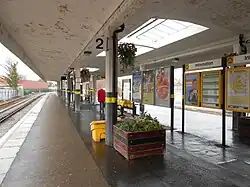A further platform was constructed for the Hooton line, on the eastern side of the original station.[5] The site of the original station was used for goods sidings.[4] In the present day, this is the site of The Concourse, a community building operated by Wirral Metropolitan Borough Council.