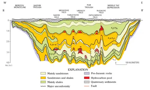 - ^ a b Ulmishek, G. F., 2003, Petroleum Geology and Resources of the West Siberian Basin, Russia. U.S. Geological Survey Bulletin 2201-G, 49 pp.