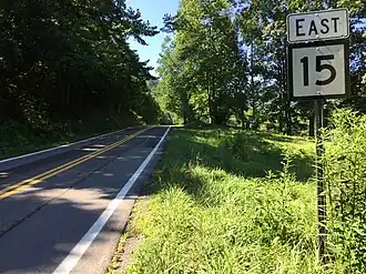 West Virginia Route 15 is an east–west state highway in the central portion of the U.S. state of West Virginia. The western terminus of the route is at West Virginia Route 4 northeast of Sutton, Braxton County. The eastern terminus is at U.S. Route 219 and West Virginia Route 55 in Valley Head, Randolph County.