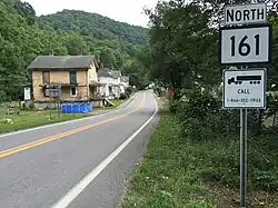 West Virginia Route 161 is a north–south state highway located entirely within McDowell County, West Virginia. The southern terminus of the route is at West Virginia Route 16 in Bishop less than 900 feet (270 m) from the Virginia state line. The northern terminus is at U.S. Route 52 in Elkhorn.
