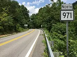 West Virginia Route 971 is a 9.9-mile (15.9 km) north–south state highway in Wyoming County, West Virginia. The route runs from West Virginia Route 97 in Baileysville north to West Virginia Route 10 in Oceana. It runs through mountainous, rural terrain, connecting Baileysville and Oceana to the communities of Clear Fork, Lillydale, and Lillyhaven. WV 971 has been the highest numbered state highway in West Virginia since July 2017, when WV 972 was decommissioned and absorbed by WV 93.