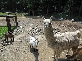 Three goats and one llama standing around in the zooAfrican lions[2]