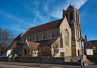 Westbrook's parish church is All Saints Church, a Victorian era church standing on All Saints Avenue. The church was built in 1894 out of ragstone by a local architect, T. Andrews. The building uses lancet windows and Geometrical Tracery. The nave is clerestoried, with Lean-to aisles and a lower chancel The two-story southeast vestries were added in 1897 by E. S. Prior, and the southwest tower was added in 1909 by W. D. Caröe.