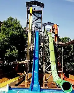 ![]() A view of the northern-most point of the park, containing the 5th tallest water slide in Europe: "The Beast". | |