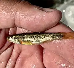 The Western speckled dace (Rhinichthys klamathensis) is a species of freshwater ray-finned fish belonging to the family Leuciscidae, the shiners, daces and minnows. This species is found in the Klamath, Warner and Sacramento drainage systems in California and Oregon.[1] This species was first formally described in 1898 by the American ichthyologists Barton Warren Evermann and Seth Eugene Meek with the type locality given as the mouth of a creek in Pelican Bay, Upper Klamath Lake, Klamath County, Oregon.[1] This taxon was previously regarded as a subspecies of the speckled dace (R. osculus) but in 2023 Peter B. Moyle, Nicholas Buckmaster and Yingxin Su confirmed it was a valid species with three subspecies, the Klamath Western speckled dace (R. k. klamathensis), Sacramento speckled dace (R. k. achomawi) and Warner speckled dace (R. k. goyatoka).[2]