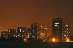The tower blocks featured in the 2015 British Sci-Fi thriller film Containment.