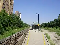 Weston GO Station is a train station in Toronto, Ontario, serving the GO Transit Kitchener line and the Union Pearson Express.[1] It is located on the south side of Lawrence Avenue West, just east of Weston Road,[1] in the neighbourhood of Weston.