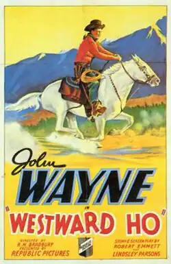 Westward Ho is a 1935 American Western film directed by Robert N. Bradbury and starring John Wayne and Sheila Bromley. It was released by the recently created Republic Pictures and was produced by Paul Malvern, who had previously produced several of Wayne's Westerns under the Lonestar Productions division of Monogram Pictures.[2] Many consider the film among the earliest revisionist Westerns.[3]