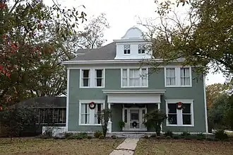 The Wheat House is a historic house at 600 Center Street in Lonoke, Arkansas. It is a two-story wood-frame structure, with a hip roof and weatherboard siding. Its massing and relatively modest styling are characteristic of the Georgian Revival, although it has a fairly elaborate entry porch, supported by slender Tuscan columns and pilasters. Dentil moulding is found at the base of the main cornice, and those that top the windows. Built c. 1910 to a design by Charles L. Thompson, it is one of Lonoke's largest and most sophisticated houses.[2]