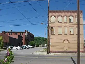 Wheeling Warehouse Historic District is a national historic district located at Wheeling, Ohio County, West Virginia. The district includes 20 contributing buildings and 11 contributing structures. They are warehouses and commercial style buildings and structures between Main Street and the Ohio River. All of the buildings date to the late-19th and early-20th century. The warehouses are mostly two- and three-story masonry buildings. The two-story commercial buildings have storefronts on the first floor and residential units above. Notable buildings and structures include the Pump Store (1933), Wheeling Stamping Plant (1932), Allied Plate Glass (c. 1920), Warwick China (c. 1887), Boury Warehouse (c. 1894), Ott-Heiskell Company (c. 1871), Edward Wagner Wholesale Grocers building (1915), the Moderne style former Greyhound Bus Station, and Main Street Bridge (1891).[2][3]