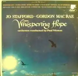 Whispering Hope is a 1962 album by Jo Stafford and Gordon MacRae.[2] The lead song and title track was originally recorded in 1949, reaching No. 4 on the charts.[3]
