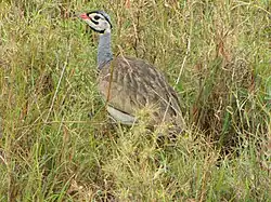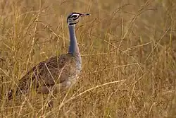 The white-bellied bustard or white-bellied korhaan (Eupodotis senegalensis) is an African species of bustard. It is widespread in sub-Saharan Africa in grassland and open woodland habitats.[3] Despite its wide distribution and easily identifiable characteristics, very few studies have been conducted on this species and little is known about its life history and behavior.