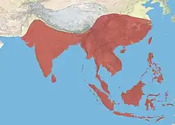 Several subspecies are named for the populations that are widely distributed. The nominate subspecies is described from Sri Lanka but is often widened to include chinensis of mainland India and adjoining regions in Asia, west to Arabia and east nearly to Japan. The remaining subspecies are those from islands and include insularis of the Andaman and Nicobar Islands, midnicobaricus of the central Nicobars, leucocephala of Car Nicobar, maldivus of the Maldives, javanicus of Java and leucomelanus of Sulawesi and the Lesser Sundas.[3][4]