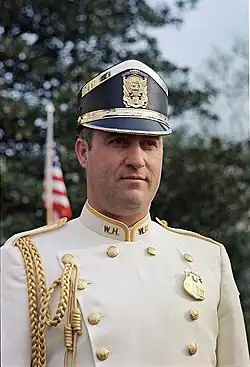 The uniforms were updated by Richard Nixon in 1970 after he was inspired by a trip to Europe. Nixon wanted a new dress for formal state occasions. The uniform was debuted on January 28, 1970, receiving a negative reception from the press and public. The uniform was retired in the mid-1970's, eventually being bought as a marching band uniform for the Meriden-Cleghorn Community School District.[4]