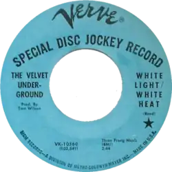"White Light/White Heat" is a song recorded by the American rock band the Velvet Underground. It was released as a single in late November 1967 with the B-side "Here She Comes Now". The following year it appeared as the title track on their second studio album of the same name.[3]