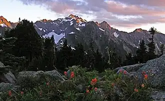 White Mountain is a 6,378-foot (1,944-metre) mountain summit located in the Olympic Mountains, in Jefferson County of Washington state.[1] Situated in Olympic National Park, its nearest higher neighbor is Mount LaCrosse, 0.95 mi (1.53 km) to the northeast, and an unnamed glacier lies in the north cirque between the two peaks.[2] The Anderson massif lies 3.1 mi (5.0 km) to the north of White Mountain. Precipitation runoff from the mountain drains into tributaries of the Quinault River and Duckabush River.