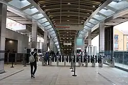 The work involved restoring the historic station entrance, building a new station concourse and ticket hall above the Underground and Overground tracks, widening the sub-surface line platforms, and providing an intermediate concourse above the Overground tracks – as well as platforms and other infrastructure for Elizabeth line services.[20][22] Ten lifts provide step free access to all platforms, with three escalators providing access down to the Elizabeth line platforms.[23] A new north-south, free public access route through the station is also provided, shortening journeys for local residents.[20]