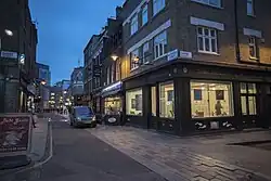 Today the market consists of stalls arranged along the northern half of the street, between Old Street and Fortune Street, with the road closed to traffic. There is a small general market and a food market of up to 50 food and drink vendors Monday–Friday lunchtime,[8] which can be bustling with activity (and queues) on a sunny lunch time. It has occasional food festivals.[9] In recent times, there has been significant investment from Islington Council, the City of London and English Heritage. It is open Monday–Friday, 10am–2pm.