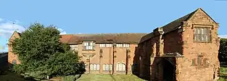At the founding of the house in 1342, Whitefriars occupied a site of 10 acres (4 ha) in the south east of Coventry.[18] The western approach was made from Much Park Street where an outer gate still stands. The cloister building was constructed from red sandstone.