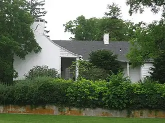Land at the site of the present Whitehall Farm was purchased in 1808 by Martin Baum, one of Cincinnati's leading early citizens. By the time of his death in 1831, the estate had acquired the name of "Whitehall", and under this name it was devised to his son David Chambers Baum. After David's early death, his widow, Amanda Sroufe Baum, married Aaron Harlan, who in 1842 began planning to build a mansion on the property. The project's monumental size prompted it to be nicknamed "Harlan's Folly".[2] Construction on Judge Harlan's mansion began in 1846 and finished in the following year. In later years, the property was acquired by E.S. Kelly, who by the 1910s had performed extensive improvements to the house and its surrounding grounds.[3]