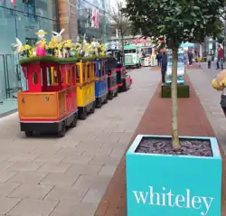 Apart from the residential areas, which house around 10,000 residents, the main focus is the Whiteley Shopping Centre, an open air pedestrianised mall https://www.whiteleyshopping.co.uk/ (not to be confused with 'Whiteley Village' in Walton-on-Thames). Stores include Marks & Spencer, Next plc, Boots, WH Smith and many other common High Street names but there are also other units that were specifically earmarked for local enterprises. Parking is available for 1500 vehicles and is free for the first 4 hours and after 6pm.[5] In 2015 a new leisure complex adjacent to Whiteley Shopping opened, providing a nine-screen cinema and a further five restaurants.