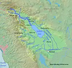 ![]() The course of the Whitewater River highlighted on a map of the Salton Sea drainage basin | |