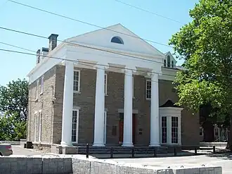 Whitney Mansion is a historic home located at Niagara Falls in Niagara County, New York. It is a two-story Greek Revival stone structure built in 1849 by the son of General Parkhurst Whitney, a village founder and owner of the Cataract House and The Eagle Tavern. The structure features a two-story pedimented porch with four heavy Ionic columns. It is located overlooking the Niagara River, just above the American Falls.[2] It now contains law offices.