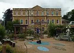 After smallpox treatment services transferred to Clare Hall Manor at South Mimms in 1896, the hospital was officially re-opened by the Duke and Duchess of York as a workhouse infirmary with the addition of a large adjacent building in 1900.[3] Originally called Highgate Hill Infirmary, in 1914, it became Islington Infirmary and by 1920, five linked blocks had been added to the south of the original building. The hospital was taken over by the London County Council in 1930 and renamed St Mary's Hospital.[3]