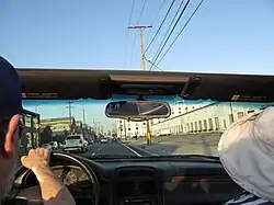 View of wholesale buildings on both sides of 6th Street as automobile heads toward the new 6th Street bridge, July 2022.