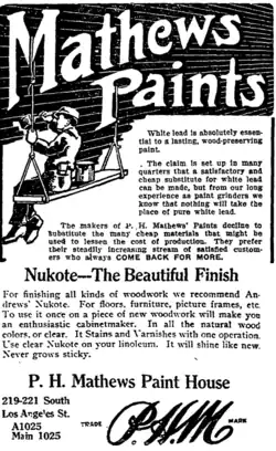 5. ^ a b "Mathews Paint Company and Western Wholesale Drug Company on South Los Angeles Street Almost Completely Gutted by Flames of Unknown Origin," Los Angeles Times, May 18, 1907, page II-2