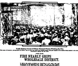 6. ^ a b c "Fire Nearly Grips Wholesale District," Los Angeles Times, April 7, 1909, page II-1