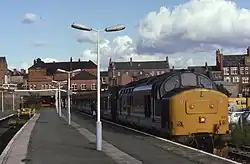 On 30 April 1977, the former L&YR terminus at Liverpool Exchange was closed.[22] Trains were re-routed onto a new underground line beneath Liverpool city centre to Moorfields and Liverpool Central.[23] Since diesel multiple units could not operate in the tunnels, trains from the Wigan line initially terminated at Sandhills (the last surface station), with passengers transferring to or from electric trains on the Southport or Ormskirk lines for the short trip into Liverpool city centre.