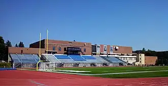 Wildcat Stadium is an 11,015-seat open-air multi-purpose stadium in Durham, New Hampshire, on the campus of the University of New Hampshire (UNH). It is home to the New Hampshire Wildcats football, lacrosse and track and field varsity teams. The stadium, which runs west-northwest, consists of a FieldTurf playing surface surrounded by a 400-metre track. On either side of the track are aluminum stands (the larger home stands being on northeast side). The stadium lies just southwest of the Field House, which houses Lundholm Gym as well as Swazey Pool and the Jerry Azumah Performance Center.