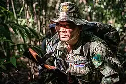 Cardamom Forest Protection Program – Ministry of Environment rangers patrol 1,400,000 hectares of the Cardamom Rainforest Landscape in partnership with the Royal Government of Cambodia, making the Cardamom Mountains Rainforest the best protected rainforest in Southeast Asia.[3][4] Twelve ranger stations are staffed with 14 rangers per station; 4 Ministry of Environment Judicial Police rangers, 8 Royal Gendarmerie Rangers, and 2 Wildlife Alliance staff. The rangers conduct daily patrols stopping land grabbing, dismantling illegal logger and poachers camps, seizing illegal timber and vehicles, stopping people clearing the forest, seizing bulldozers, excavators and other forest clearing vehicles, removing snares, saving live wildlife. Before the program started, 38 elephants and 29 tigers had been killed.[5] Thanks to successful ranger patrolling, there has been zero elephant poaching in the Cardamoms since 2006.[5][4]