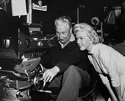 Cline (left) on the set of Lucky Me with Doris Day, 1954
