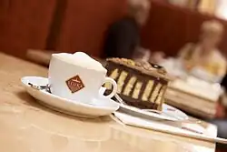 The Konditorei was founded in 1891 by Wilhelm Josef Sluka and his wife Josefine.[2] On the basis of his high-quality products Sluka received in 1896 the title of "confectioner to the k.u.k. court" ("k.u.k. Hofzuckerbäcker"). The café was patronised by customers of the highest social strata, including the Empress Elisabeth. Its central location and discrete atmosphere attracted ministers and representatives from the nearby Parliament Building on the Ringstrasse, gentlemen from the Rathaus, stars of the Burgtheater and members of the nobility and bourgeoisie.