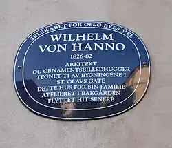 Plaque to von Hanno on St Olav's Gate, Oslo