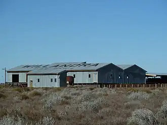 The shearing precinct includes the shearers' quarters, cook house and overseers' cottage, all dating from 1936, and the rebuilt shearing shed, dating from 1960.[4]