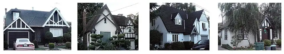The area where Willborough and Neuchatel reside was not a part of the first planned subdevelopments in Burlingame Terrace, rather it was a block of land listed as "De Coulon".[1] In the 1920s, development of Willborough began by prolific SF Peninsula developer George W. Williams and contractor Frank F. Burrows. Frank F. Burrows went on to become mayor of Burlingame in 1944,[2] president of the American General Contractors of America,[3] and winner of the Building Industry Conference Board Achievement Award in 1974.[4] The two combined their names to create the title "Willborough," spelled to match nearby Hillsborough. In the midst of the Great Depression, they wanted to supply starter homes for families with "Prices ... in keeping with the times... 5 rm. homes $5950 - $6150, 6 rm. homes $6,300 - $6500"[5] The project's architect was an Englishman named Gilliam (no further details), who envisioned recreating a tight-knit European village with traditional Tudor-revival ("Tudorbethan") design.[6] Twenty-two homes were built and all retain the original design, including: