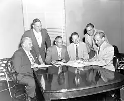 Washburne (left) with J. Frank Houghton, Donald C. McLaren, Fred C. Petersen, Henry S. Bartholomew and B. E. Shaffer, 1953