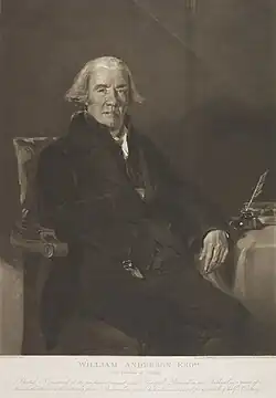 William Anderson (1746-1830) was a bookseller in Stirling, Scotland. He was born as one of three triplets: two boys and a girl all of whom survived into old age. He was elected Provost of Stirling five times in the years 1793, 1794, 1813, 1814, and 1829. He is reported to have had a very lavish funeral which was his long-standing ambition. An engraving was made by William Ward of his portrait which was painted by Andrew Geddes.[2] After his retiral a gilded copy of the engraving is said to have hung in his former bookstore. The British Museum hold a copy of the print.[3] Anderson served for many years as a Justice of the Peace.[4]