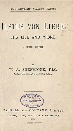 William Ashwell Shenstone FIC FRS (1 December 1850 in Wells-next-the-Sea, Norfolk, England – 3 February 1908 in Mullion, Cornwall) was a chemist, schoolmaster and published author.[1]