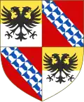 Per fesse or and argent an eagle displayed with two heads sable, on the breast an escutcheon gules charged with a bend vair.
