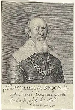 Colonel Sir William Brog (? - 13 March 1636) was a Scottish soldier in the service of the Kingdom of Scotland and the Dutch Republic. His early life is, at the moment, completely obscure and he only appears on record in 1588 when he rose to the rank of sergeant major in the regiment of Colonel Bartholomew Balfour. He was promoted to colonel of the first regiment of the Scots-Dutch Brigade in 1606 and held the position until 1636. Thus, he probably holds the record for the longest-serving Scottish colonel during the Eighty Years' War and the Thirty Years' War.[1]