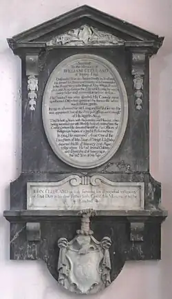 • John Clevland (1706–1763),[9] eldest son and heir, of Tapeley, Secretary to the Admiralty. On the monument he erected to his father following his death in 1734 he referred to himself as "his only surviving son".