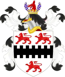 Coddington died in office on 1 November 1678 and is buried in the Coddington Cemetery (Rhode Island Historic Cemetery, Newport No. 9) on Farewell Street in Newport. His grave is marked with the original marker, as well as a taller monument erected on the 200th anniversary of the establishment of Newport.[52] His oldest son William Coddington, Jr., born of his third wife, Ann Brinley Coddington, was the governor of the colony for two terms from 1683 to 1685.[36] His son Nathaniel married Susanna Hutchinson, a daughter of Edward Hutchinson, and a granddaughter of William and Anne Hutchinson.[53] His daughter Mary married Peleg Sanford, a colonial governor from 1680 to 1683, the son of earlier governor John Sanford [53] with his second wife Bridget Hutchinson, and a grandson of William and Anne Hutchinson. His grandson William Coddington III, the son of Nathaniel, married Content Arnold, the daughter of Benedict and Mary (née Turner) Arnold, and granddaughter of Governor Benedict Arnold.[54] A portrait often ascribed to Governor Coddington actually portrays this grandson, who was very active in colonial affairs but never a governor.[55]