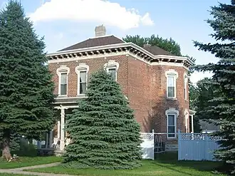 Born in New York in 1833, William Culbertson was raised in Warren, Ohio, where he learned the trade of a carriagemaker. Upon moving to Mechanicsburg in 1853, he worked as a journeyman for three years before beginning his own carriage manufacturing business in 1856 with Cyrus Barr. Their partnership was highly successful; by 1880, Culbertson and Barr had developed a reputation as one of the region's premier manufacturers of carriages, buggies, and spring wagons, as well as operating a livery from 1860 to 1874 and remaining a well-reputed repair center.[2]: 882–883 One year later, Culbertson had his residence built, fifteen years after Barr had arranged for the construction of his house.[1] Culbertson himself was active in local society; he was a member of the Mechanicsburg Methodist Protestant Church and the Odd Fellows, and was the Prohibitionist candidate in numerous local elections.[2]: 883 The firm remained in business into the twentieth century, weathering the transition to mechanization by becoming a dealer for Ford, Hudson, and Jeffery cars,[3] but the business burned in a catastrophic 1936 fire that was so large that it damaged the tower of the adjacent Second Baptist Church.[4] As a result, the Culbertson and Barr residences are the sole remaining buildings associated with the firm.[5]: 6