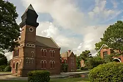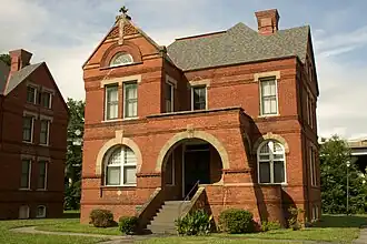 The William Enston Home, located at 900 King St., Charleston, South Carolina, is a complex of many buildings all constructed in Romanesque Revival architecture, a rare style in Charleston.[2][3] Twenty-four cottages were constructed beginning in 1887 along with a memorial chapel at the center with a campanile style tower, and it was reserved for white residents. An infirmary was added in 1931 and later converted into a superintendent's home.